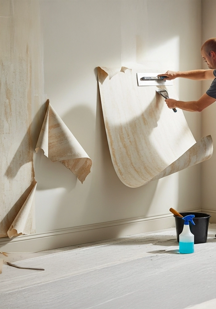 We handle the difficult removal process to strip away old paper and glue without damaging your walls. Our team repairs the surface to ensure it is perfectly smooth and ready for paint.